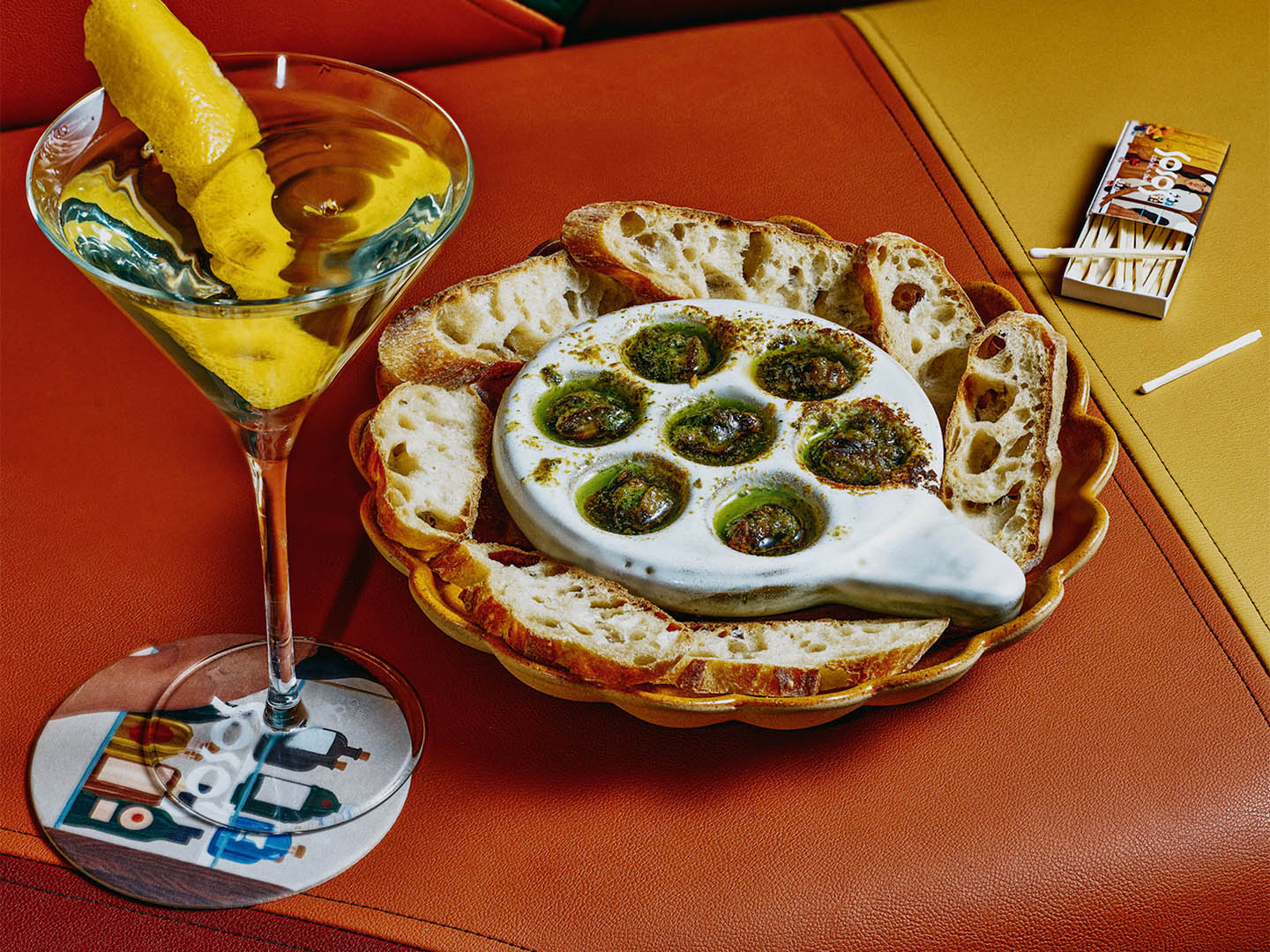 That was the brief. With that instruction in mind, the identity was built to be bold. It leaned into saturated colors, custom typography, and details that feel lived-in and soulful. Menus were structured on traditional brasserie grids and finished with custom leather covers, the logo was crafted from two typefaces that gave it structure and flair. Photography was treated to feel vintage yet fresh, and artwork from the dining room, like Scout Zabinski’s semi-nude painting, found its way onto coasters, matches, and other guest touchpoints.
